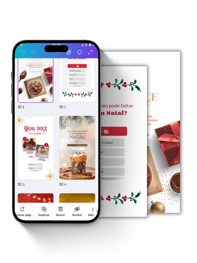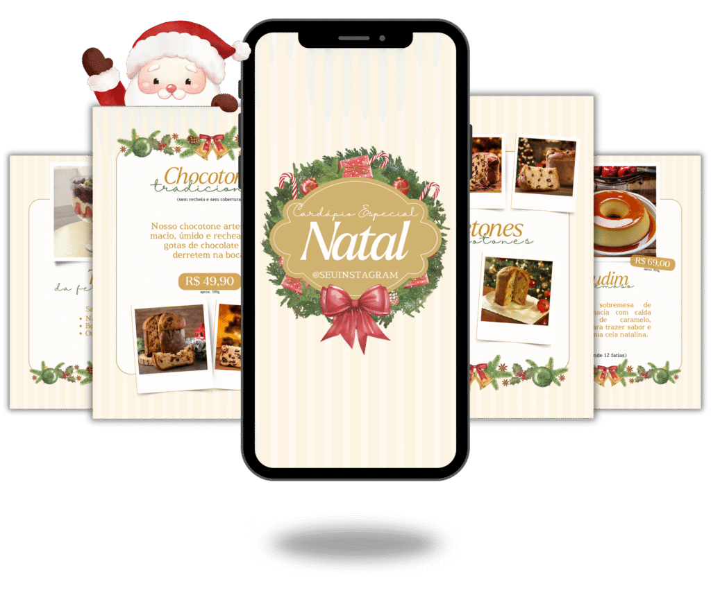 Com o Cardápio Editável de Natal, você cria em minutos uma vitrine linda, profissional e irresistível — feita para impulsionar suas vendas neste Natal.